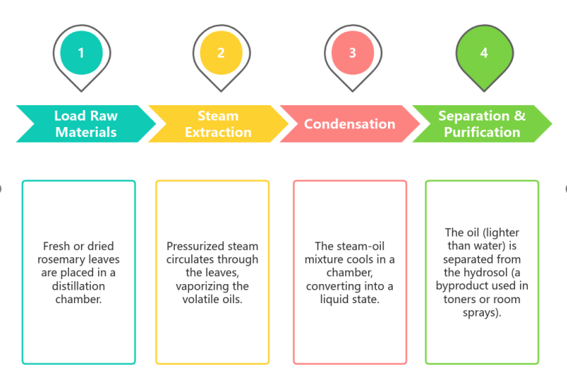 Steam distillation preserves the oil’s natural integrity (no chemical residues). Here’s the step-by-step process: