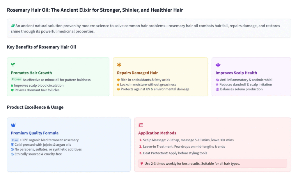 Rosemary hair oil isn’t just another trend—it’s a results-driven solution backed by both tradition and research. Here are the key benefits that make it stand out from other hair care products: