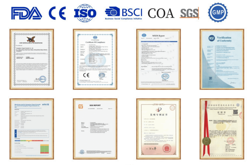- Stringent Quality Certifications: We hold ISO22716, MSDS, FDA, HALAL, and GMP quality management system certifications—plus the prestigious Warner CIA technology certification from the United States. Every product meets global safety and quality standards.